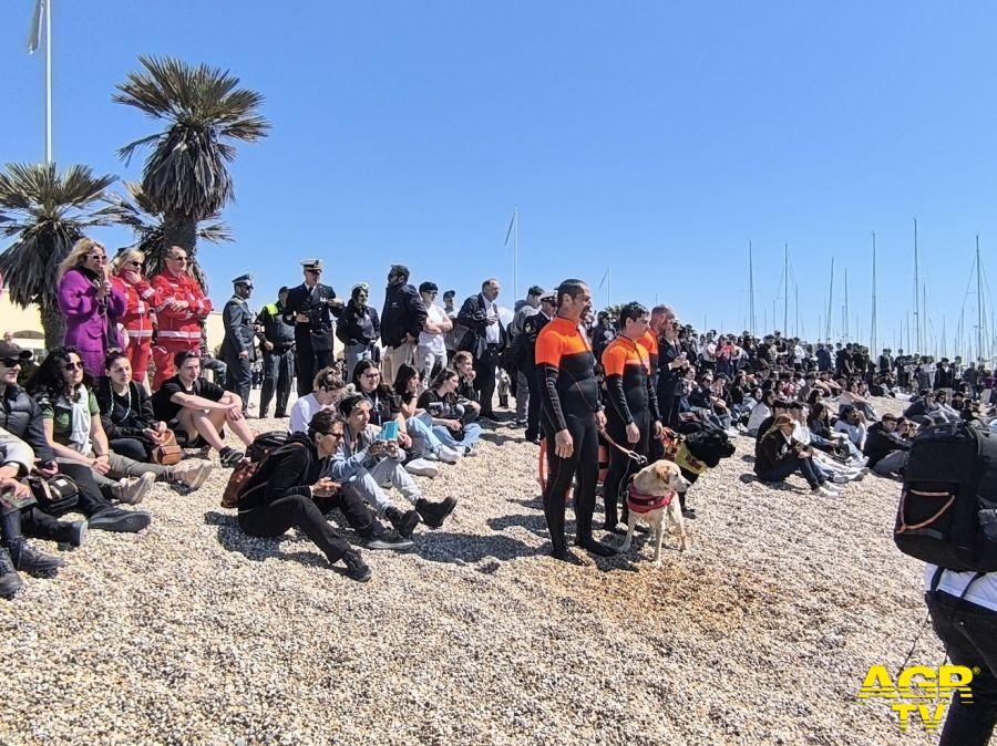 Alle ore 12.00 circa è prevista una coinvolgente esercitazione con i mezzi della Capitaneria di Porto, il personale e i cani addestrati della Scuola Italiana Cani Salvamento.