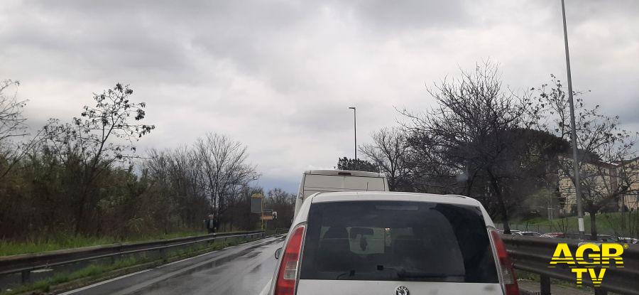 Disagi alla viabilità in direzione della Capitale a causa delle intense piogge del mattino