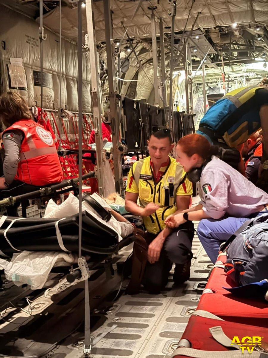 Tre aerei dell’Aeronautica militare, impegnati in una nuova operazione umanitaria congiunta Medevac di evacuazione sanitaria, sono atterrati nella notte dopo essere partiti ieri , 9 febbraio,nel tardo pomeriggio da Eilat in Israele. Uno di questi, un C-130 con a bordo l’assessora al diritto alla salute della Toscana Monia Monni, è arrivato poco prima della quattro a Pisa, mentre gli altri si sono diretti a Ciampino e Linate. La missione era iniziata domenica.