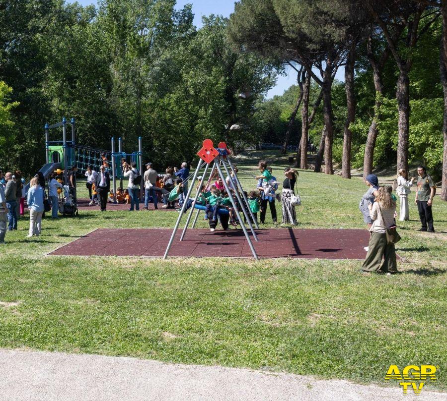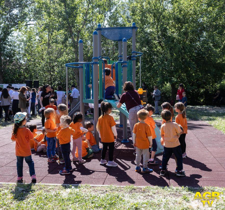 Le nuove aree gioco, spazi moderni e sicuri, sono distribuite lungo l'intera area verde per garantire massima accessibilità alle famiglie: la prima (circa 150 mq) si trova nella zona dell’ex sorgente, a ridosso degli orti urbani; la seconda (circa 150 mq) è situata nell'area del Parco dei Cinque Sensi, mentre la più grande (circa 300 mq) è posizionata nei pressi di via Ugo Ojetti. L’area destinata agli orti urbani si estende su oltre 3.400 mq ed è suddivisa in 60 lotti, con l’obiettivo di promuovere la sostenibilità e la coesione sociale attraverso l’agricoltura urbana.