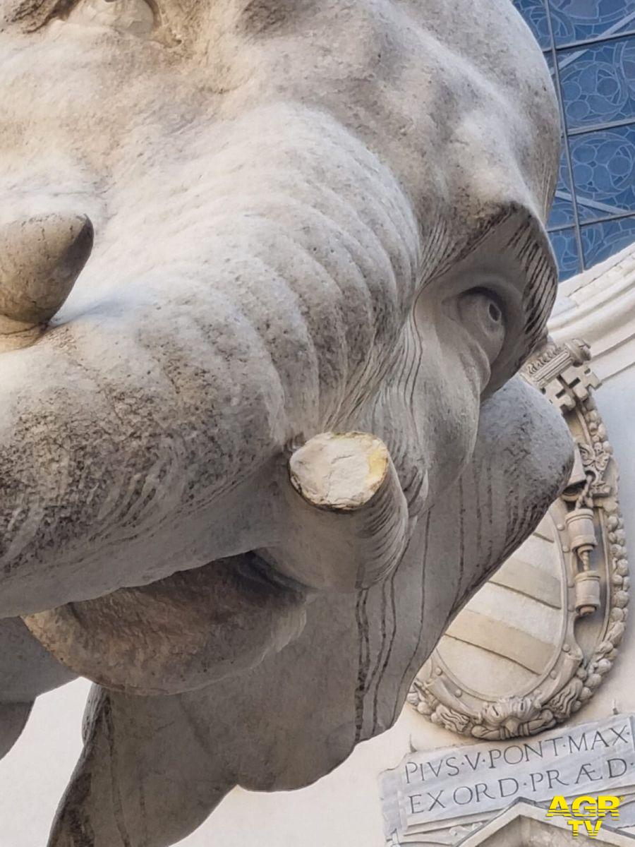 Elefante della Minerva danneggiato il pezzo di zanna caduto