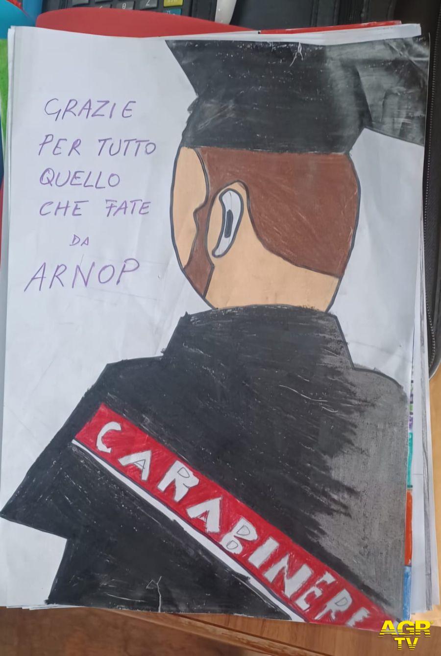 Gli alunni della classe 4ª B hanno salutato l'arrivo dell'Arma preparando diversi disegni e messaggi di ringraziamento, lasciati bene in vista nell'aula destinata alle operazioni elettorali. I lavori, realizzati nei giorni precedenti, colpisce per la spontaneità e l'affetto verso l'Istituzione