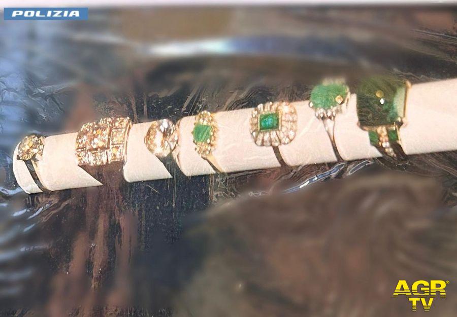 Bracciali ed anelli d'oro oggetto della truffa sottratti all'anziana