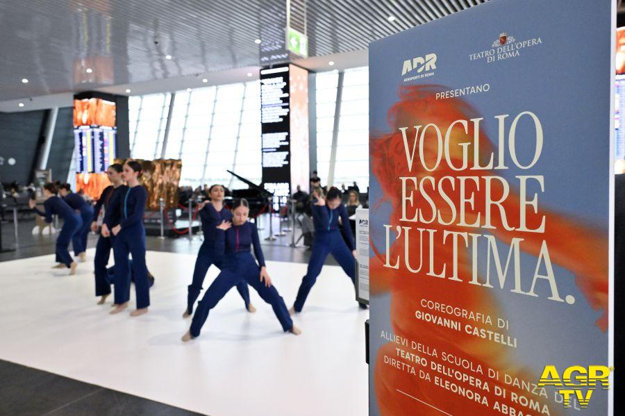 Attraverso il linguaggio del corpo, l’interpretazione delle allieve della Scuola del Teatro dell’Opera di Roma ha rappresentato la rottura del silenzio e la forza della solidarietà femminile, trasformando il principale scalo italiano in un luogo di riflessione condivisa e partecipata. Le ballerine, inizialmente sole in una corsa incessante, si sono poi ritrovate unite in un movimento collettivo: un grido coreografico di resistenza e rinascita. La Direttrice della Scuola di Danza del Teatro dell’Opera Eleonora Abbagnato ha commentato: «Con questa esibizione abbiamo voluto trasformare un luogo di passaggio in uno spazio di consapevolezza, portando la danza là dove può raggiungere tutte e tutti. Le nostre allieve hanno dato corpo a un messaggio che unisce impegno civile ed emozione: nessuna donna deve sentirsi sola. La cultura, quando si fa gesto condiviso, diventa uno strumento potente per riconoscere, denunciare e superare ogni forma di violenza.»