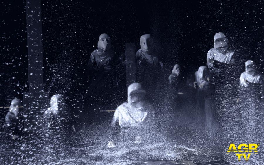 Le video-proiezioni di Fabio Massimo Iaquone, artista di riferimento della videoarte scenica, ampliano lo spazio teatrale con immagini simboliche e visionarie che non illustrano l’azione ma ne diventano controcampo sensibile, dilatando e frammentando il tempo. Frammenti del testo shakespeariano attraversano la scena come echi, intensificando l’esperienza sinestetica senza ricondurla a una narrazione esplicita.
