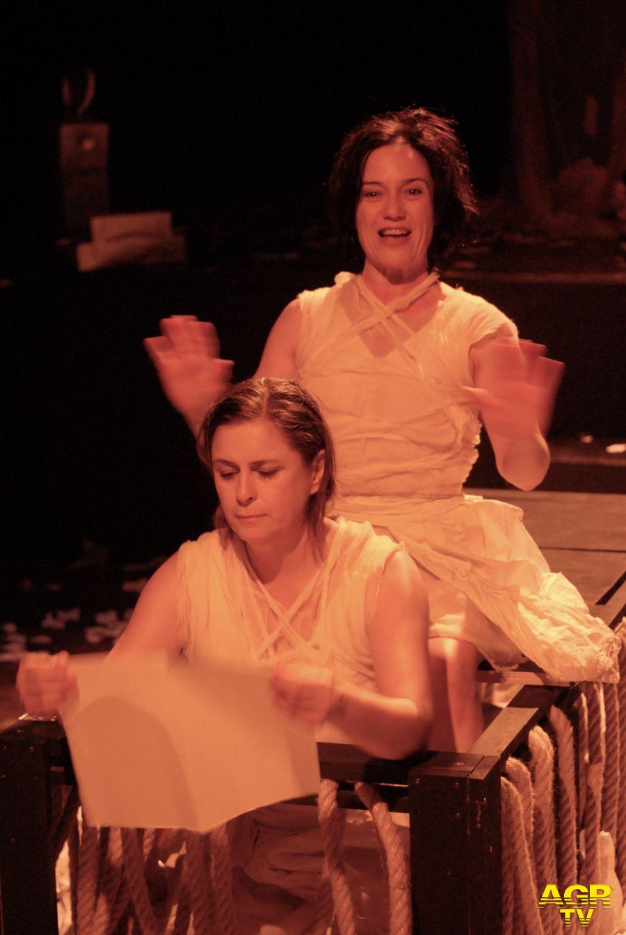 (AGR) Due donne su una scena coperta di fogli stracciati, stropicciati come la loro vita di madri in perdita si affaccendano alla ricerca di un senso che non è più; rovistando nel passato raccontano i moti del loro dolore sforzandosi di ipotizzare un futuro.