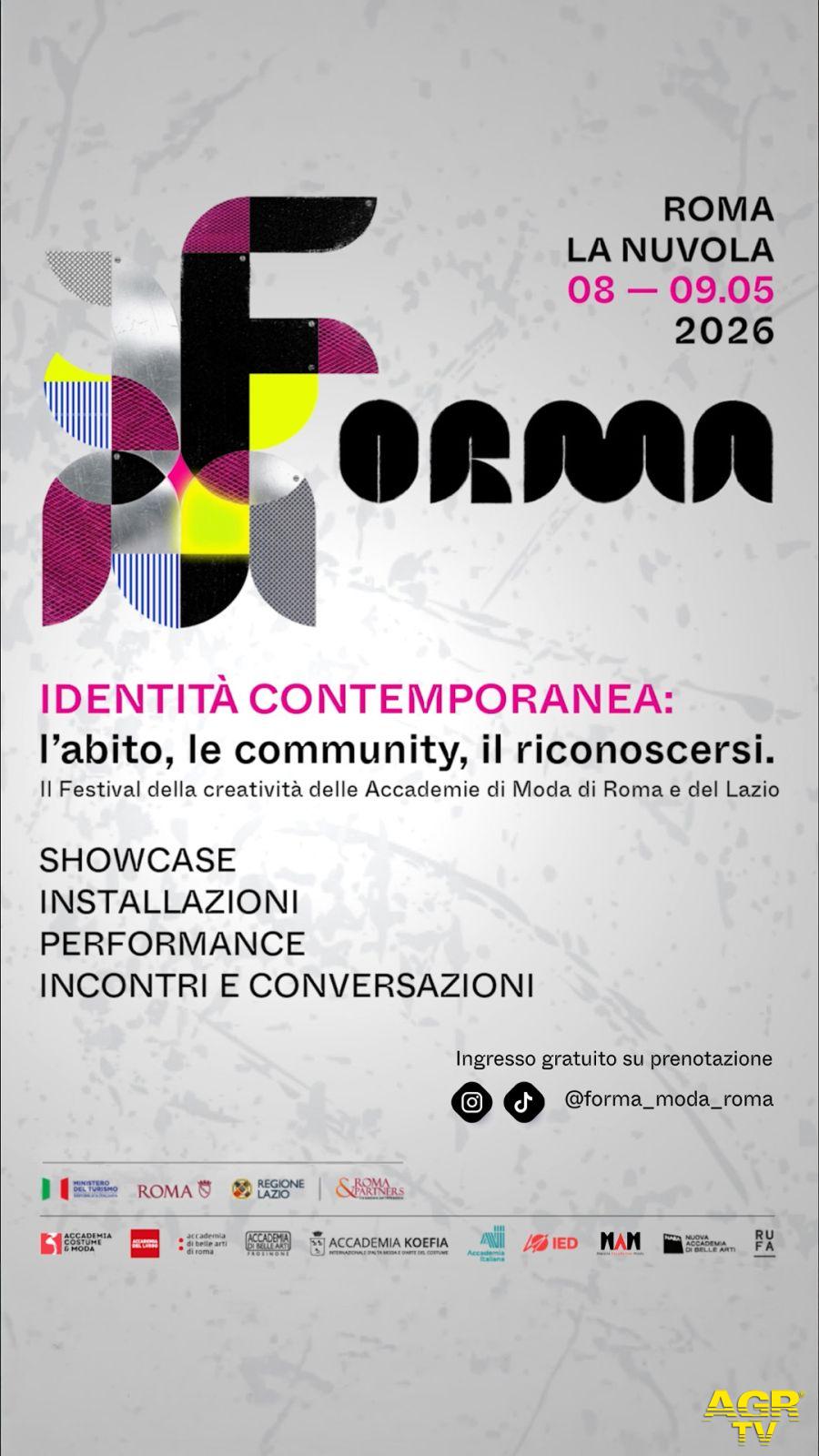 (AGR) Dopo il grande successo della scorsa edizione, che ha registrato la partecipazione di oltre 25.000 studenti e la presenza di ospiti di rilievo internazionale come Domenico Dolce e Giancarlo Giammetti, torna FORMA. L’appuntamento è fissato per l’8 e il 9 maggio 2026 presso il Centro Congressi La Nuvola, che ospiterà la seconda edizione dell’evento dedicato alla formazione nel settore moda. FORMA si conferma come un progetto condiviso che riunisce le principali istituzioni accademiche della Capitale e della Regione Lazio, con l’obiettivo di valorizzare i giovani talenti e promuovere le arti creative. Nato dalla collaborazione tra l’Assessorato ai Grandi Eventi, Sport, Turismo e Moda di Roma Capitale, l’Assessorato allo Sviluppo Economico, Commercio, Artigianato, Industria e Internazionalizzazione della Regione Lazio e alcune tra le più prestigiose accademie di moda e design del territorio, l’evento si afferma come un punto di riferimento nel panorama nazionale, configurandosi come piattaforma di incontro, confronto e sperimentazione tra studenti, docenti e professionisti del settore. Il tema dell’edizione 2026, “Identità contemporanea: l’abito, le community e il riconoscersi”, propone una riflessione sul ruolo della moda come linguaggio identitario e strumento di appartenenza, con un focus sulle subculture intese come spazi di aggregazione, condivisione e costruzione del sé. Nel corso delle due giornate, il Centro Congressi La Nuvola si trasformerà in un laboratorio dinamico e multidisciplinare, dove gli studenti delle principali scuole di moda romane potranno confrontarsi, progettare e presentare i propri lavori, dando vita a un’esperienza immersiva che intreccia formazione, creatività e innovazione. Attraverso un programma articolato di attività, FORMA mira a valorizzare il talento emergente e a rafforzare il dialogo tra moda e arti contemporanee, contribuendo allo sviluppo culturale e produttivo del settore. Sono già aperte le iscrizioni ai talk (https://formamodaroma2026.eventbrite.it/). Il programma completo sarà annunciato nei prossimi giorni; tuttavia, alcuni ospiti sono già stati presentati in conferenza stampa, tra cui Maria Grazia Chiuri, Direttrice Creativa di Fendi, Sofia Balestra, Francesca Ragazzi, Head of Editorial Content di Vogue Italia, Ellen Hodakova Larsson, designer svedese e fondatrice del brand Hodakova, e Olivier Theyskens, stilista che ha guidato maison come Rochas, Nina Ricci e Theory. Tra le principali novità di questa edizione, l’estensione degli spazi con l’utilizzo del piano inferiore rispetto all’Auditorium, che ospiterà lo Speaker Corner: un’area dedicata a incontri, presentazioni ed esibizioni. L’8 maggio sarà presente Niccolò Filippucci, reduce dalla vittoria a Sanremo Giovani, mentre il 9 maggio interverrà Lea Gavino, cantautrice e attrice. Media partner dell’evento saranno Rai Radio 2 e Rai News 24, con RaiNews.it nel ruolo di content partner. FORMA è promossa dall’Assessorato ai Grandi Eventi, Sport, Turismo e Moda di Roma Capitale e dall’Assessorato allo Sviluppo Economico della Regione Lazio, con l’obiettivo di rafforzare il ruolo di Roma come polo di eccellenza nella formazione in ambito moda e design, favorendo sinergie tra istituzioni, territori e nuove generazioni di creativi. L’evento rientra nel progetto “Roma Smart Tourism”, finanziato dal Ministero del Turismo nell’ambito del fondo destinato ai comuni a vocazione culturale, storica, artistica e paesaggistica che ospitano siti riconosciuti dall’UNESCO come patrimonio mondiale dell’umanità. La presentazione ufficiale si è svolta mercoledì 22 aprile 2026 alle ore 11:30 presso la Sala delle Bandiere in Campidoglio, nel corso di una conferenza stampa alla presenza dell’Assessore ai Grandi Eventi, Sport, Turismo e Moda di Roma Capitale Alessandro Onorato e della Vicepresidente e Assessore allo Sviluppo Economico della Regione Lazio Roberta Angelilli, insieme alle accademie coinvolte nel progetto: Accademia Costume & Moda Accademia del Lusso, Accademia di Belle Arti di Roma, Accademia di Belle Arti di Frosinone, Accademia Internazionale d’Alta Moda e d’Arte del Costume Koefia, Accademia Italiana IED – Istituto Europeo di Design MAM – Maiani Accademia Moda NABA - Nuova Accademia di Belle Arti RUFA – Rome University of Fine Arts