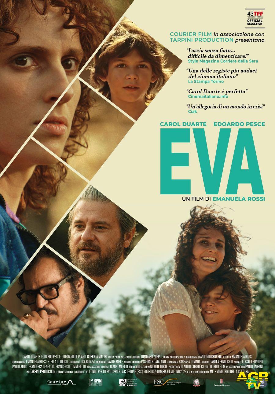 (AGR) Dopo la presentazione in concorso al Torino Film Festival e la selezione al Los Angeles Italia Film Festival 2026 (8–14 marzo), EVA, opera seconda di Emanuela Rossi, arriva nelle sale italiane dal 21 aprile 2026 con Courier Film e interpretato da Carol Duarte, Edoardo Pesce, Tommaso Zoppi, Giordano De Plano e Roberta Mattei, con la partecipazione straordinaria di Antonio Gerardi. Prodotto da Courier Film in collaborazione con Tarpini Production e con Nicolò Forte come produttore esecutivo, il film è stato realizzato con il contributo del Fondo per lo Sviluppo e la Coesione (FSC) 2021-2027 - Umbria Film Fund 2022 e ha ottenuto il contributo selettivo dal Mic. EVA è un thriller psicologico e provocatorio che intreccia dramma individuale e crisi esistenziale e ambientale, trasformando la narrazione cinematografica in un’esperienza di riflessione civile: “Esiste nel mondo un posto sicuro per i nostri bambini?”. La comunità mondiale e le istituzioni non possono ancora distrarsi dal trovare questa risposta e dal costruire prospettive di futuro per tutti i bambini del mondo?