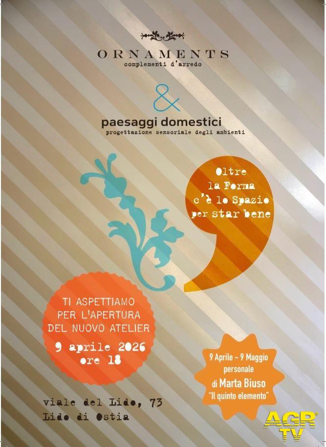 (AGR) Nasce a Ostia, in viale del Lido 73, un nuovo spazio ibrido, in cui progettazione, materia e ricerca artistica convivono in un’unica visione. "Ornaments + Paesaggi Domestici", infatti, è un atelier multifunzionale che unisce complementi d’arredo, progettazione sensoriale degli interni e programmazione culturale. L’apertura segna un doppio battesimo: insieme allo spazio inaugura la prima mostra personale della fotografa Marta Biuso, primo capitolo di una programmazione che includerà mostre, workshop, conferenze e momenti di ricerca dedicati al rapporto tra spazio, percezione e vita quotidiana.