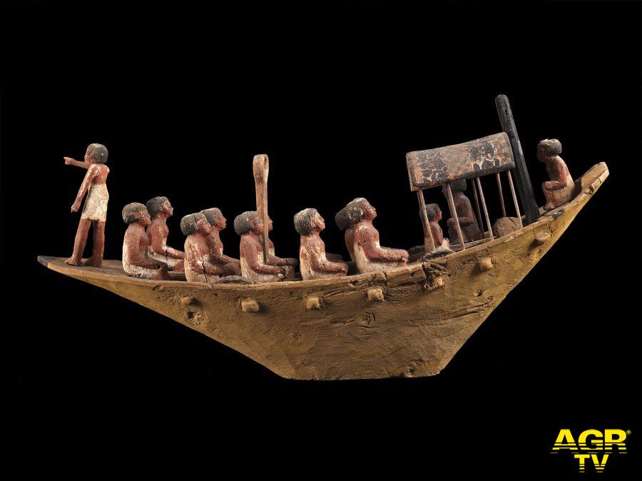 Dalla magnificenza regale si entra nell’universo del rito e del passaggio, dove la morte è intesa come trasformazione. Il monumentale sarcofago di Tuya, madre della regina Tiye, domina una sezione dedicata alle pratiche funerarie e alla fede di rinascita. Attorno, le statuette shabti, i vasi canopi e un papiro del Libro dei Morti raccontano la precisione quasi scientifica con cui gli Egizi preparavano il viaggio nell’aldilà: un insieme di formule, immagini e strumenti per attraversare il mondo invisibile e rinascere alla luce di Ra.
