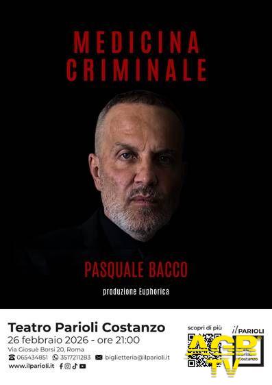 (AGR) Debutta il 26 febbraio (ore 21,00) al Teatro Parioli di Roma lo spettacolo “Medicina criminale”, interpretato da Pasquale Bacco, medico legale e autore noto per il suo impegno critico sui temi della salute, dell’etica e del potere con la partecipazione di Gaetano Partipilo