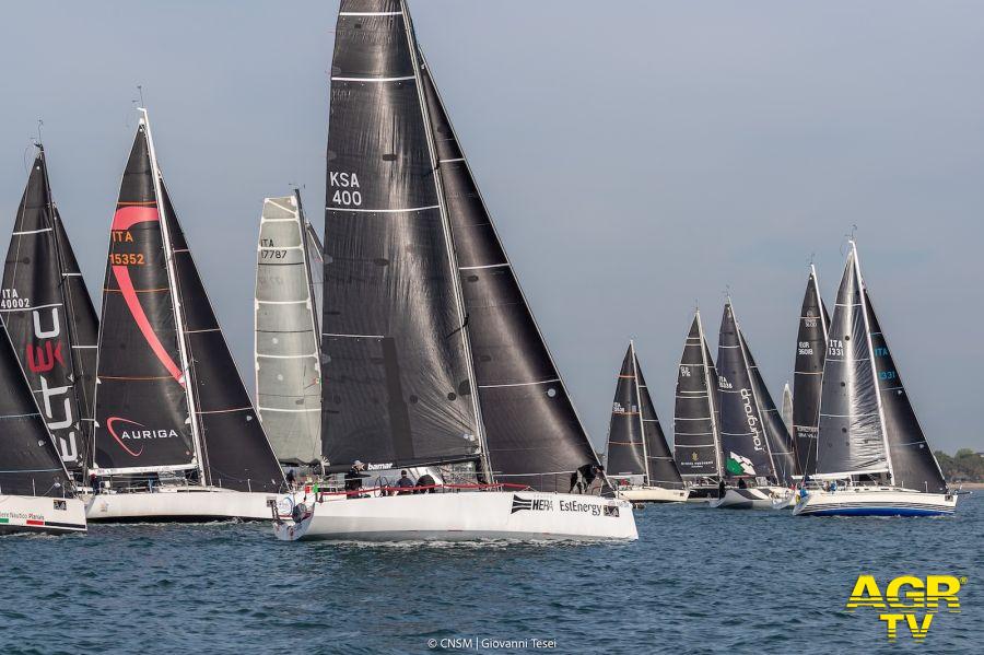 Compatto il gruppo degli inseguitori con alla testa Fieramosca, IMX40 di Alessio D’Avanzo, Grey Goose, Arya 415 di Fabio Belleri con Andrea Boscolo alla tattica, Cuni, Canard40 degli ungheresi Simo Bela-Attila Gyorki, Bliss Sly 47 della blogger di 25 Nodi Elisabetta Maffei, Valentina 4 della coppia padre-figlio Mauro e Niccolò Tinti e il nuovo Cattiva Compagnia, IY1198 di Marco Ziliotto.